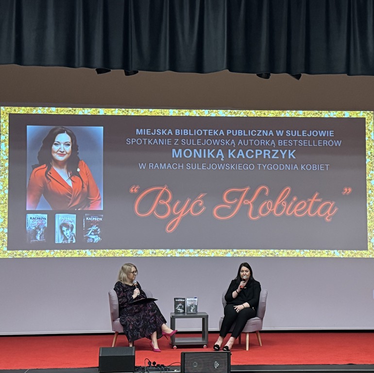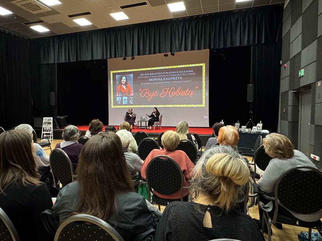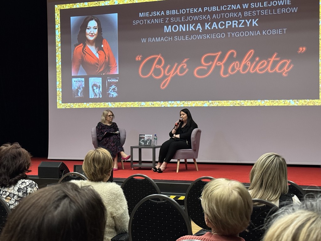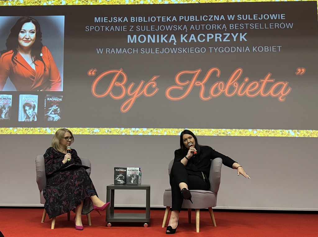 W piątek, 14 marca o godzinie 16:00, w Miejskiej Bibliotece Publicznej w Sulejowie odbyło się spotkanie autorskie z Moniką Kacprzyk – mieszkanką Sulejowa i autorką książek. Wydarzenie było częścią I Sulejowskiego Tygodnia Kobiet „Być Kobietą”.