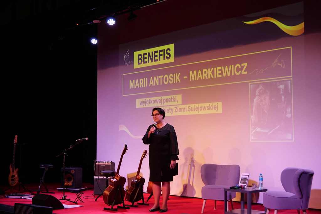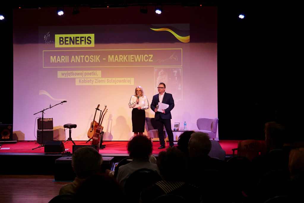 Benefis zakończył się serdecznymi podziękowaniami oraz symbolicznym wręczeniem Pani Marii Antosik-Markiewicz pamiątkowej statuetki przez Panią Burmistrz Dorotę Jankowską. Był to wyraz uznania za jej dorobek literacki i wkład w dziedzictwo kulturowe regionu.