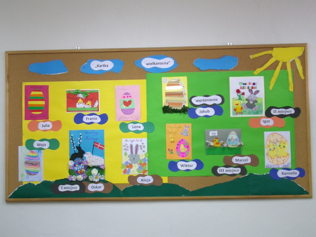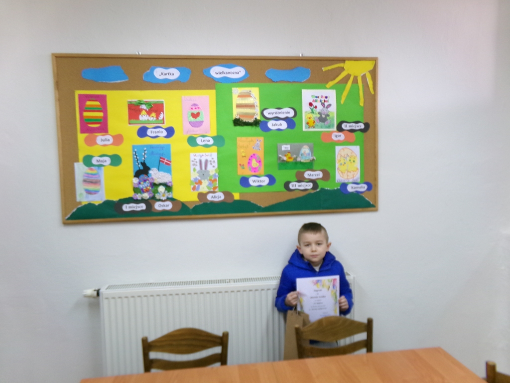 Dzieci chętnie podjęły temat. Ich zadaniem było własnoręczne wykonanie kartki świątecznej. Za oryginalność, inwencję twórczą i pomysłowość zostały nagrodzone. Otrzymały dyplomy i nagrody rzeczowe.