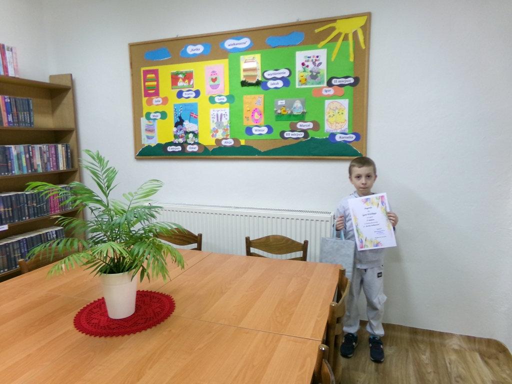 Popularyzowanie polskiej tradycji i folkloru związanego z obchodami Świąt Wielkiej Nocy oraz pogłębianie wiedzy na temat symboli z tym świętem związanych było inspiracją dla Filii Bibliotecznej w Przygłowie do zorganizowania dla najmłodszych czytelników placówki formy plastycznej pt. „Kartka wielkanocna”.