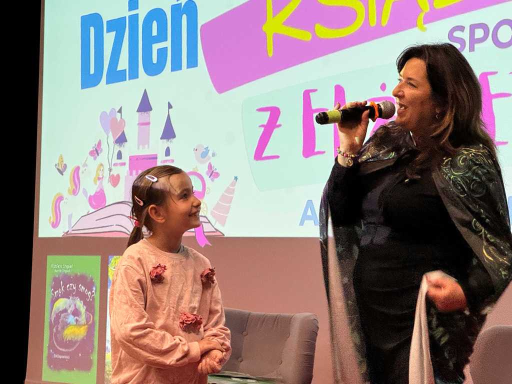 W trakcie wydarzenia nie zabrakło licznych animacji, zabaw literackich i interaktywnych niespodzianek, które sprawiły, że dzieci aktywnie uczestniczyły w spotkaniu i doskonale się bawiły. Jednym z najbardziej emocjonujących momentów była możliwość wejścia na scenę i osobistego zadania pytania autorce – dla wielu maluchów było to wyjątkowe przeżycie, które dodało im odwagi i sprawiło ogromną radość.