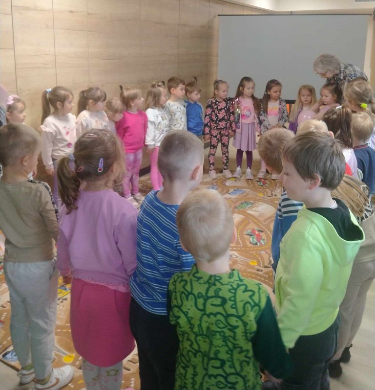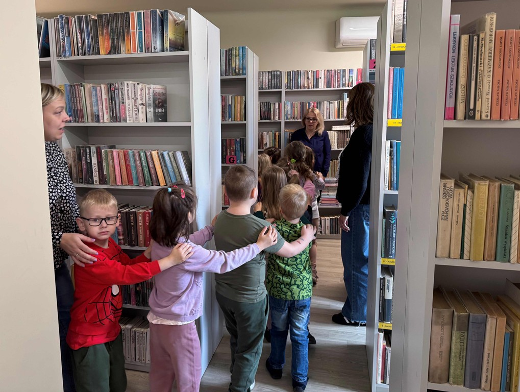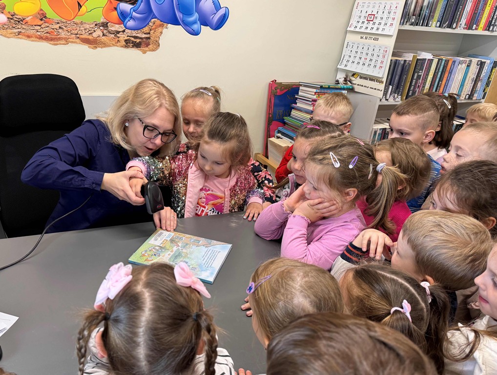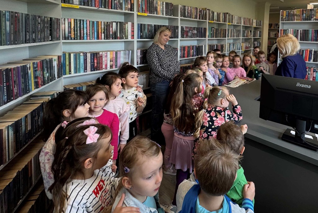 W przestrzeni pełnej książek i regałów, dzieci wzięły udział w zajęciach przygotowanych przez bibliotekarzy naszej placówki. Przedszkolaki z zaciekawieniem zwiedziły zakamarki bibliotecznego księgozbioru i przypomniały sobie zasady wypożyczania książek – jak zachowywać się w bibliotece, co zrobić by zostać czytelnikiem, jak dbać o książki i co można znaleźć na bibliotecznych półkach.