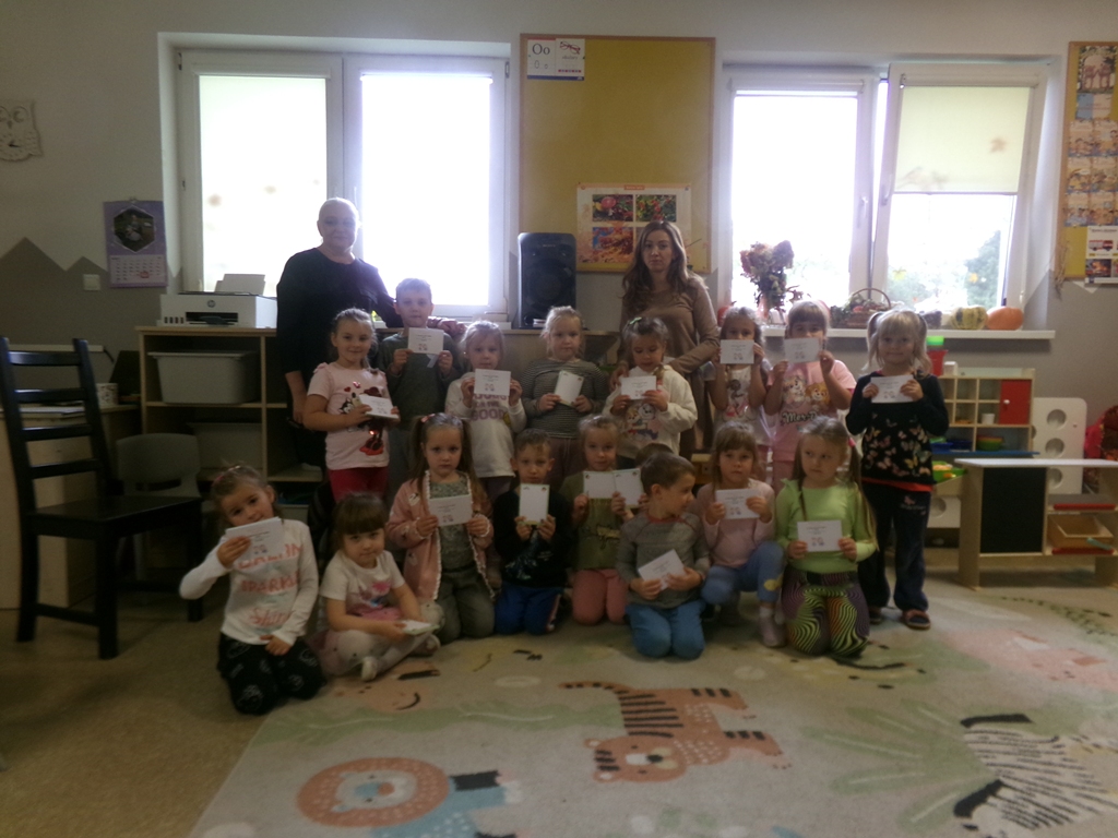 Dzieci w nagrodę otrzymały notesy i zaproszenie do zapisania się do biblioteki. Głośne czytanie upłynęło w miłej atmosferze, a morał spotkania jest taki: „Wypożyczają książki w bibliotece przedszkolaki!”.