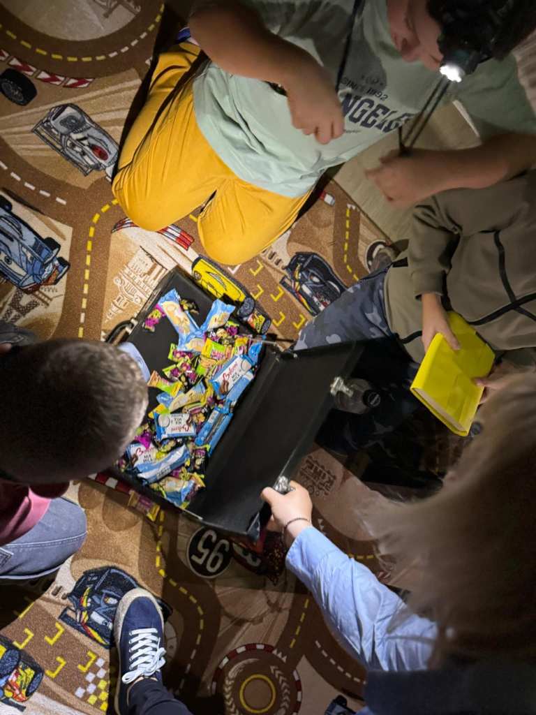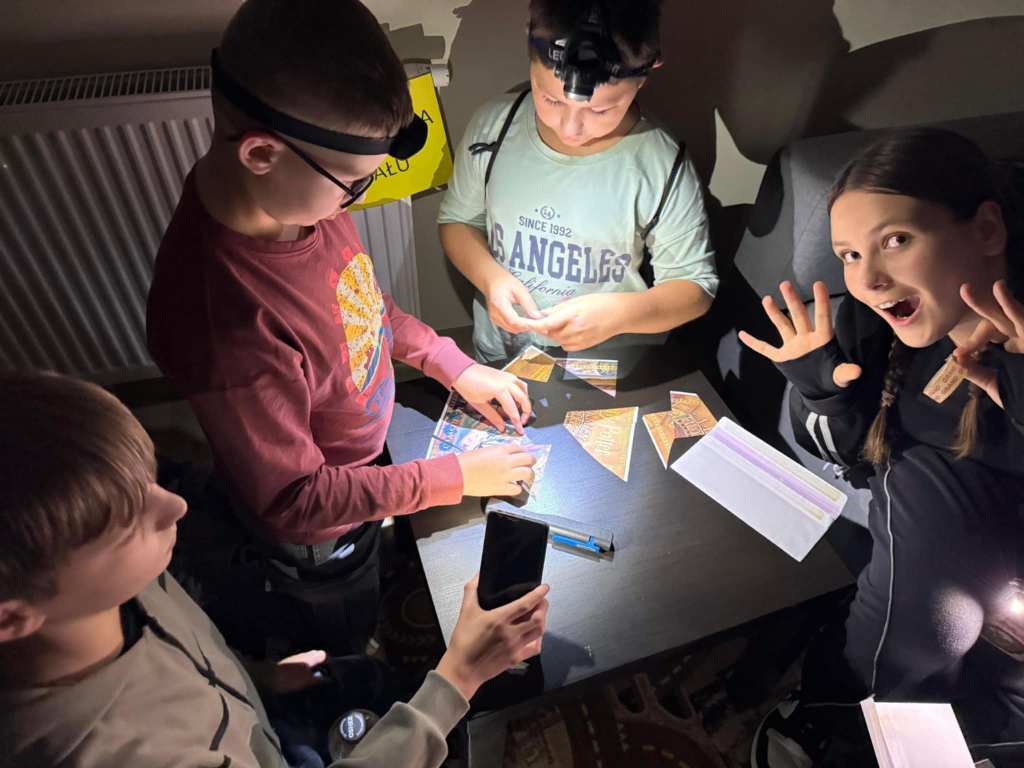 Nie zabrakło również gier i zabaw integracyjnych, które wywołały wiele śmiechu i radości, oraz warsztatów plastycznych, w trakcie których uczestnicy tworzyli pamiątkowe odznaki dla wyśmienitych detektywów.