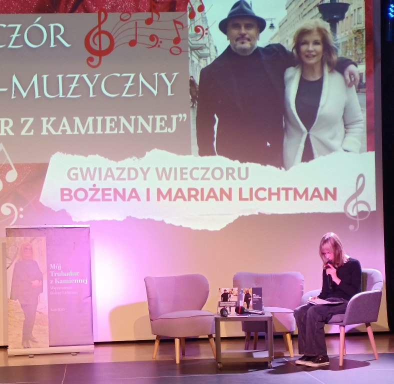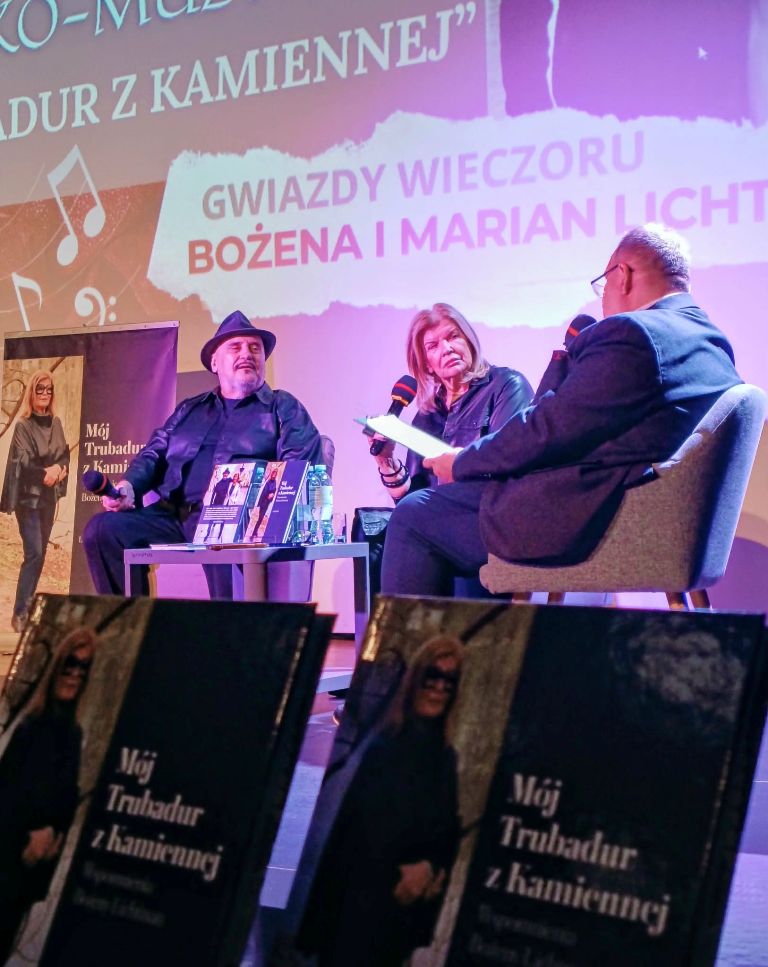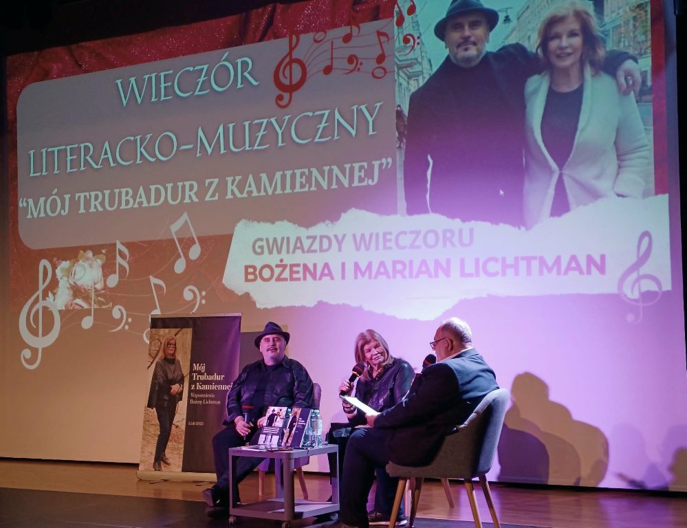 Szczególne zainteresowanie wzbudziła opowieść Bożeny Lichtman o książce „Mój Trubadur z Kamiennej”, która – jak podkreśliła autorka – ma formę swoistego pamiętnika. Publikacja stanowi bardzo osobistą narrację, ukazującą codzienność, kulisy życia artystycznego oraz wspólne doświadczenia i emocje towarzyszące wieloletniej drodze twórczej.