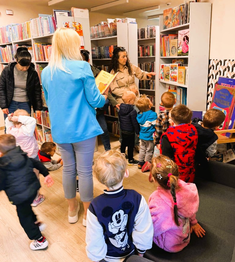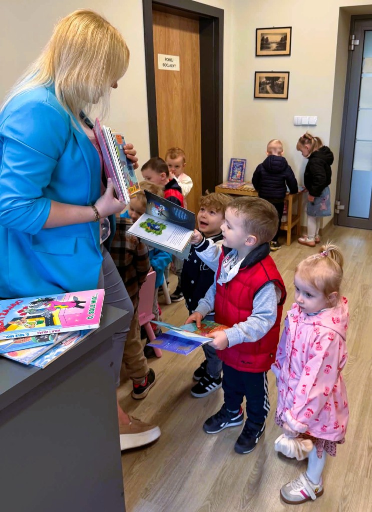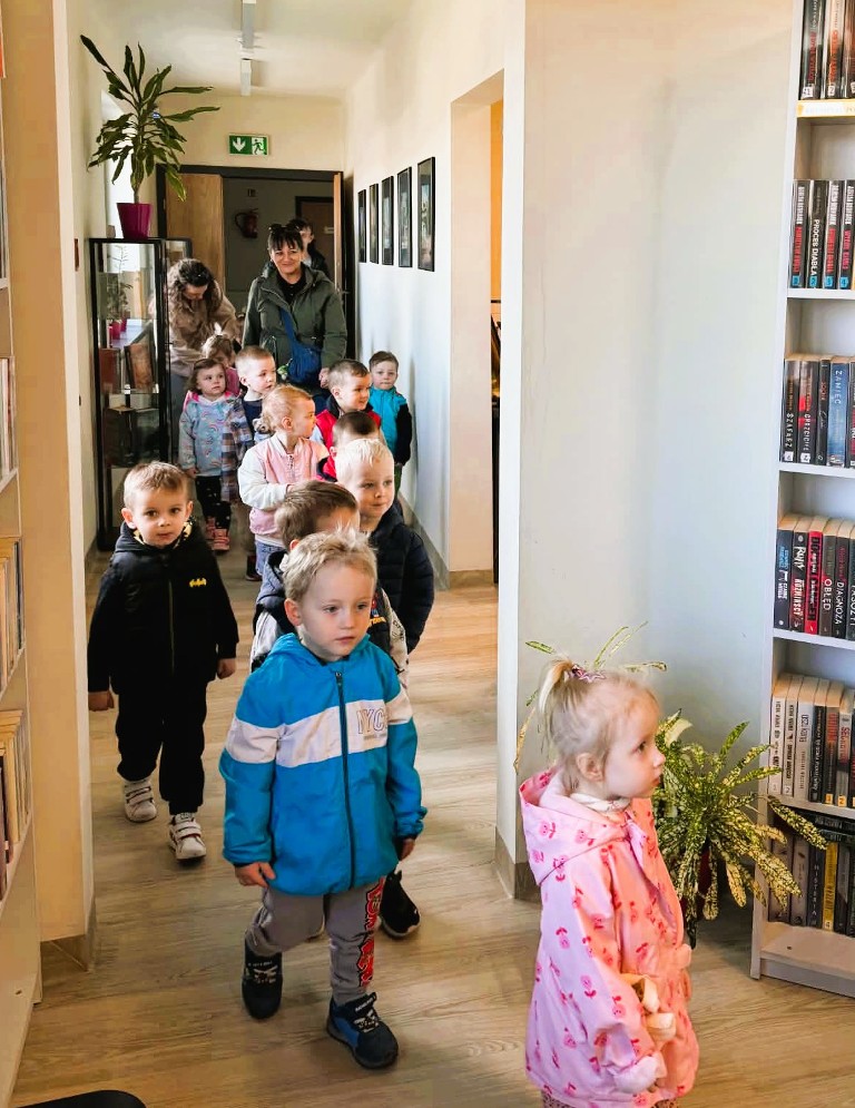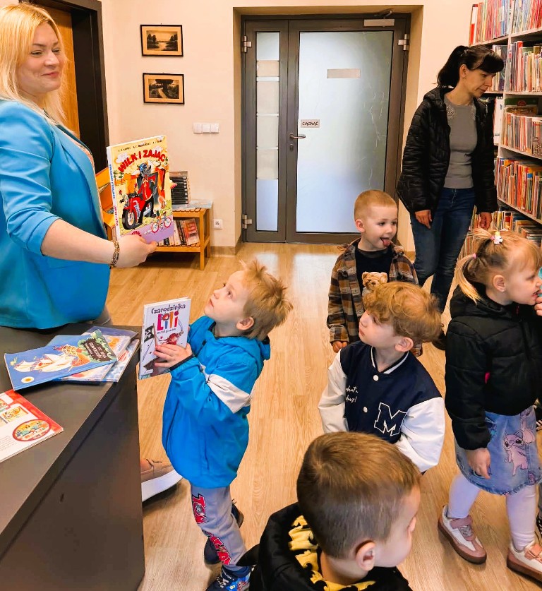 Podczas wizyty dzieci miały okazję zobaczyć, jak wygląda nasza książnica, poznać zasady korzystania z księgozbioru oraz wysłuchać pierwszych opowieści czytanych specjalnie dla nich . To ważny moment w ich rozwoju – kontakt z książką od najmłodszych lat rozwija wyobraźnię, wzbogaca słownictwo, uczy koncentracji i pomaga lepiej rozumieć świat.